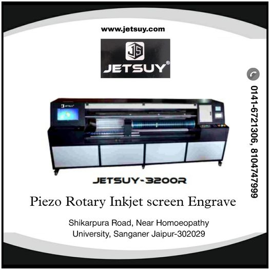 3200R Model- Piezo Rotary Screen Engraver. JETSUY offers 3200R model the latest Epson-i-3200 micro piezo print head technology, The quality of designs exposed are far superior to the film based exposing. Jetsuy- Manufacturer of Screen Making Machine from Jaipur Rajasthan.